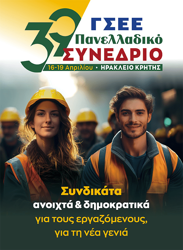 Το 39ο Συνέδριο της Γενικής Συνομοσπονδίας Εργατών Ελλάδος κατόπιν έγκρισης από την Ολομέλεια της ΓΣΕΕ του αιτήματος των Εργατικών Κέντρων της Κρήτης θα πραγματοποιηθεί για πρώτη φορά στην Κρήτη από τις 16 έως τις 19 Απριλίου 2026.